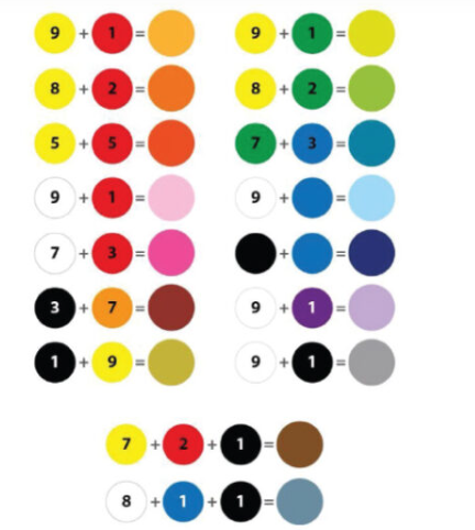 • Tức là để pha được màu bất kỳ bạn cần dùng 5 màu trắng, đen, vàng, xanh lơ, hồng cánh sen.